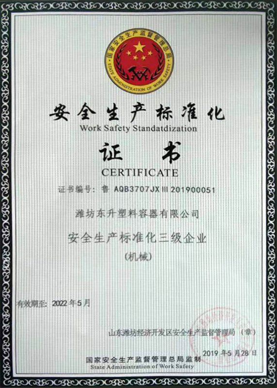東升容器通過了ISO9001質量管理體系認證,產品質檢貫穿產供銷,品質有保障