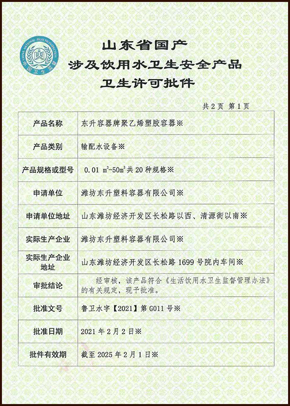 濰坊東升塑料容器有限公司坐落在環境優美的國際風箏之都—濰坊(經濟開發區內),是從事一次成型超大型滾塑容器、PE儲罐、塑料儲罐、化 工儲罐、加藥箱 、攪拌桶、周轉方箱、圓儲桶及異形滾塑容器的專業制造商。 公司運行體系是以設計、研發、模具制造、生產、銷售和售后服務為一體。為了更好的適應現代化企業管理和各行業客戶所需,特召集從事滾塑行業二十多年的重要骨干和技術人員,堅持品質為先、信用至上的 經營理念, 把用戶使用后的產品質量信息反饋公司,作為公司精益求精的宗旨;與用戶真誠合作,共同為各自企業的美好前途而努力拼搏,并愿 以我們的企業生命為大家的事業輝煌竭盡全力!