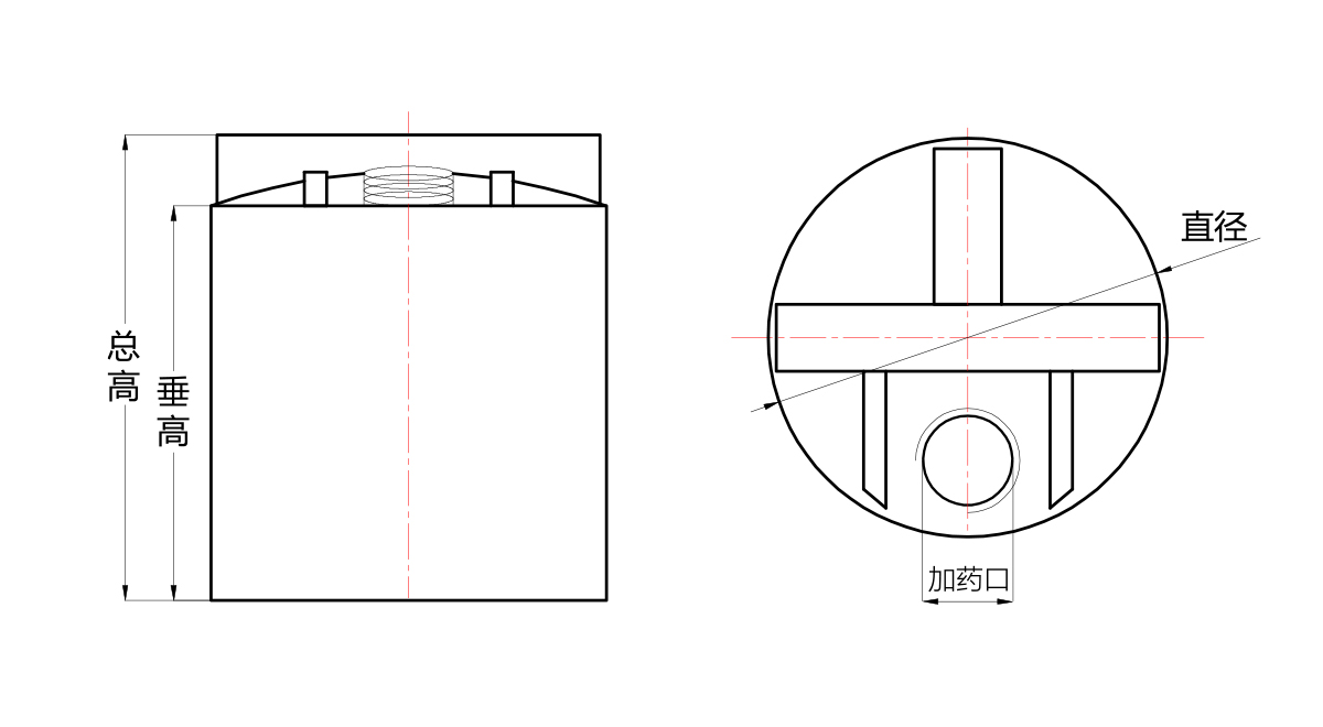| 型號Model | 直徑/mm | 垂高/mm | 總高/mm | 加藥口/mm |